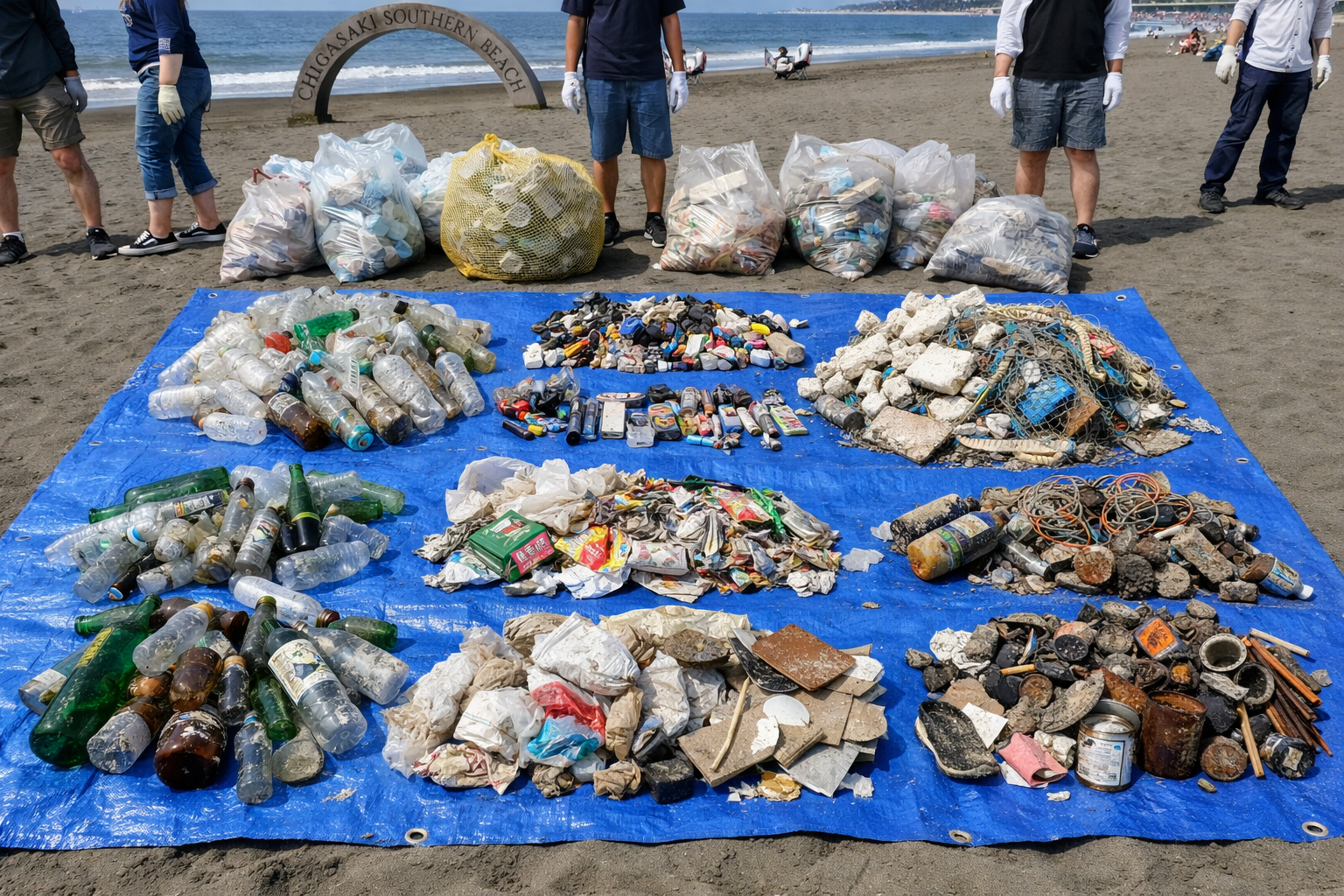 湘南クリーンエイドフォーラムは毎月「調べるビーチクリーン」を実施しています。この活動はただのごみ拾いではなく、ごみの種類ごとに数を数え、ごみの動向調査をしております。