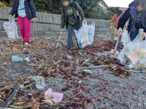 たくさんのごみが漂着していました・・・。遊びに来ていたご家族の方々にもご参加いただき、おかげさまでガッツリ拾うことができました。